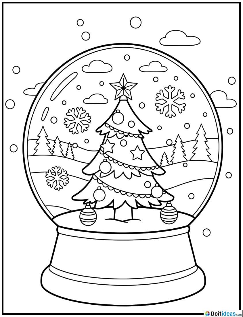 This Christmas tree-coloured snow globe page is a page of charisma and amazement of a small winterish setting. The globe is beautifully adorned with a Christmas tree that is exquisitely decorated and it is well surrounded by evenly falling snow to give the feel of a magical holiday atmosphere. The bottom of the snow globe can contain decorating patterns, ribbons or seasonal features which contributes to the... show all