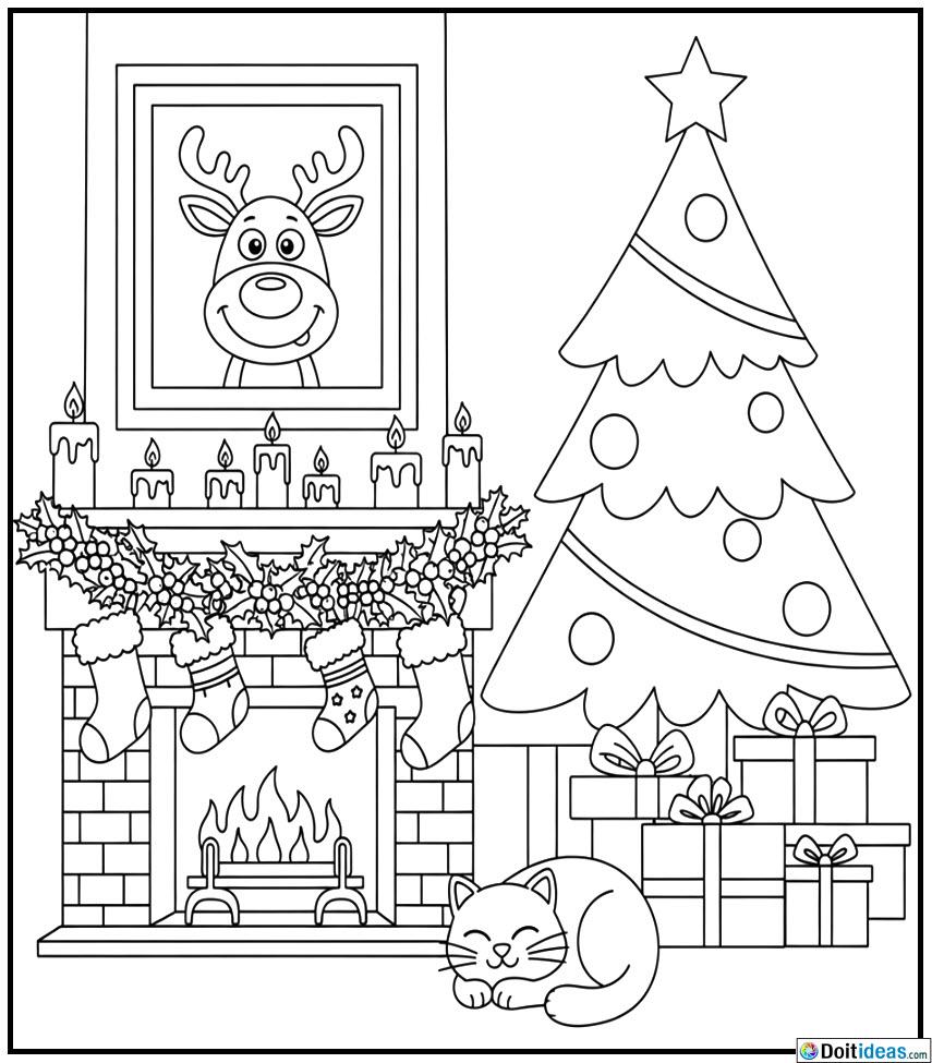 This warm fireplace that has stockings hanging to colour page brings back the warmth and the comfort of a cosy Christmas close back home. The cartoon includes a traditional fireplace with softly burning fires, mantel-decorated, and well-hanged stationary stockings awaiting filling with Christmas gifts. The surroundings might consist of garlands, candles, included wrapped gifts, and a small rug in the immediate... show all