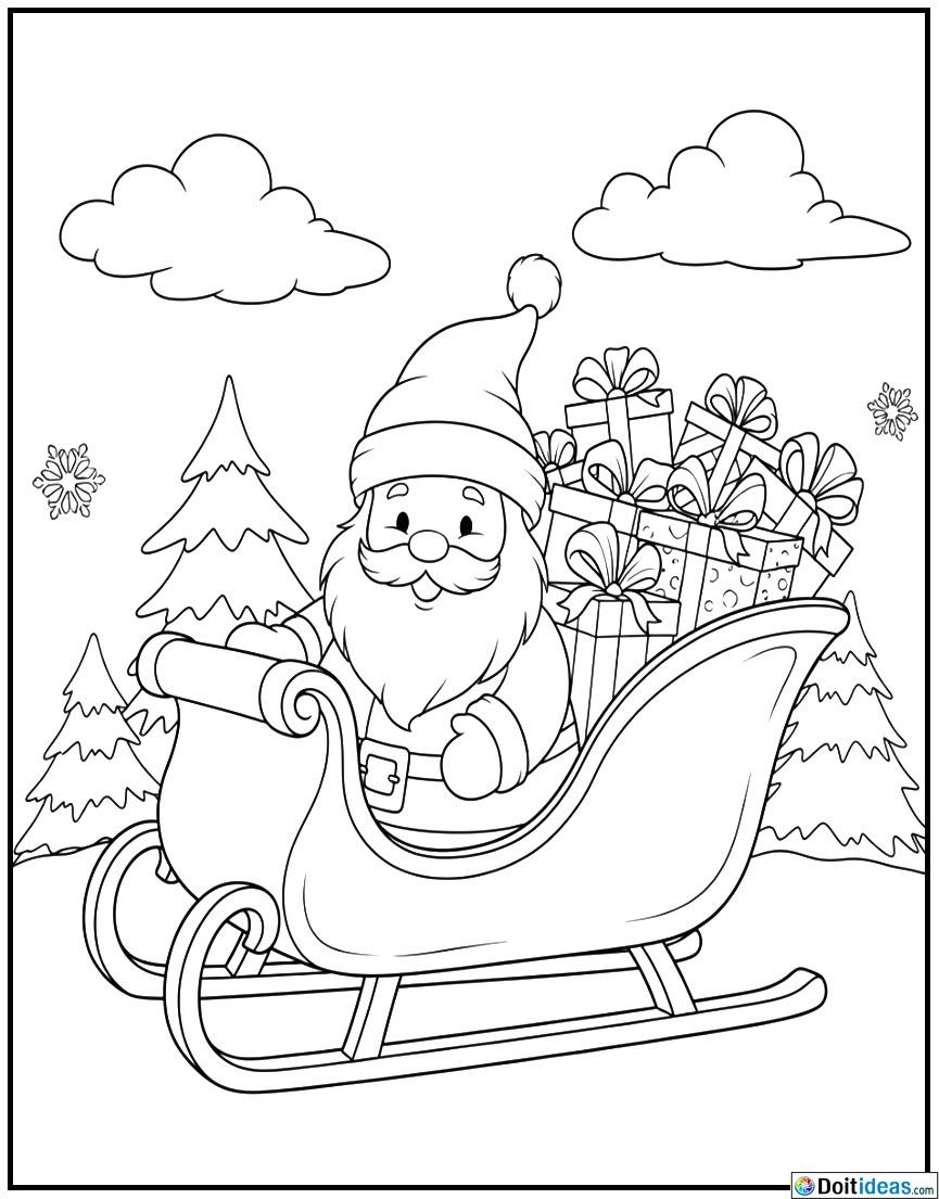 This Christmas page of the colouring holidays of the sleigh with presents of Santa carves the excitement of the Christmas Eve delivery. The cartoon shows the traditional sleigh of Santa that is exceedingly full of gifted packages, stringencies, and merrimental surprises to be handed out worldwide. The scene might be surrounded by decorative elements (snowflakes, stars or a moon glowing in the sky) which create a... show all